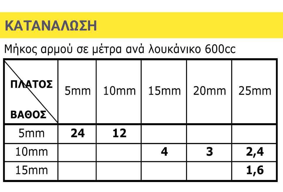 Για άριστα αποτελέσματα, η αναλογία πλάτος προς βάθος πρέπει να είναι 2:1, δεδομένου ότι το βάθος είναι τουλάχιστον 10mm.